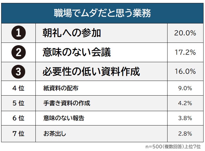 【職場でムダだと思う業務ランキング】男女500人アンケート調査