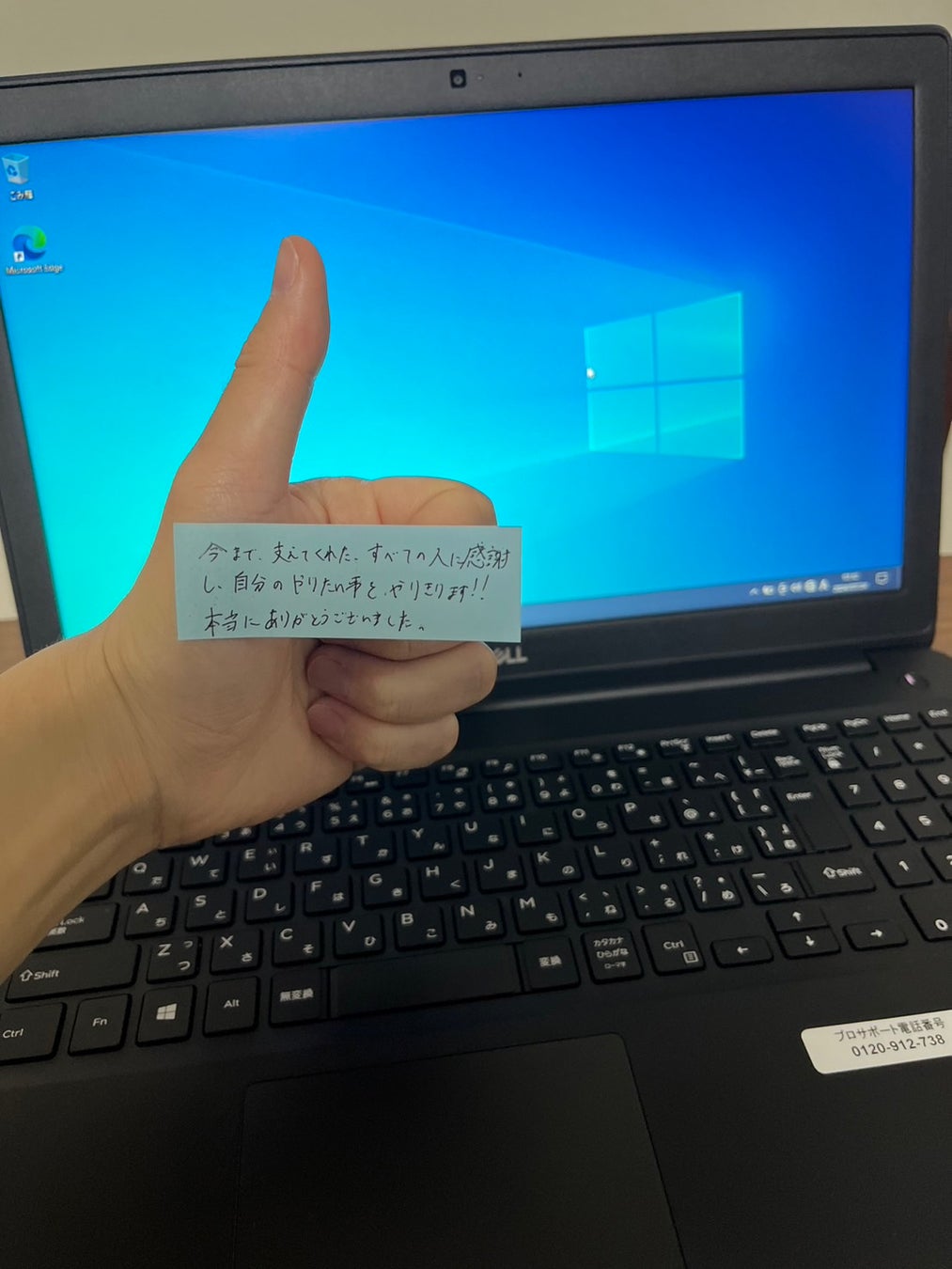 ・「この度はパソコンを寄贈いただいてありがとうございます!いただいたパソコンを使ってこれから安定した仕事につけるようにたくさん勉強します!大切に使わせていただきます!この度は本当にありがとうございました!」