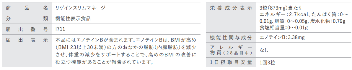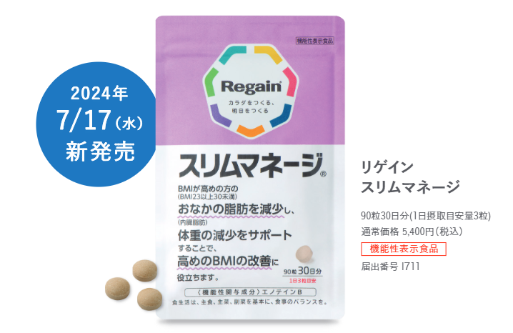 果糖の吸収抑制に着目。世界初※1エノテインBがおなかの脂肪と体重にアプローチして高めのBMI※2の改善をサポートする「リゲインスリムマネージ」誕生