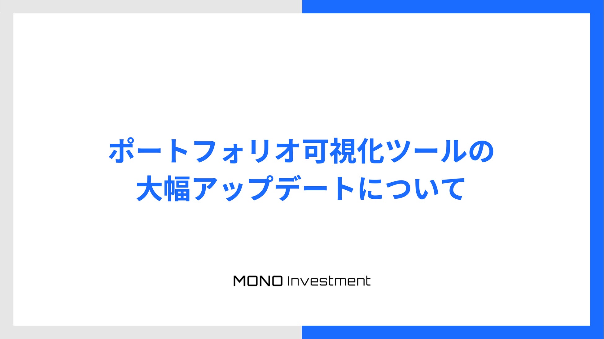 資産運用コンサルティング事業者向けCRMを提供するMONO Investmentが、ポートフォリオ可視化ツールを大幅アップデート