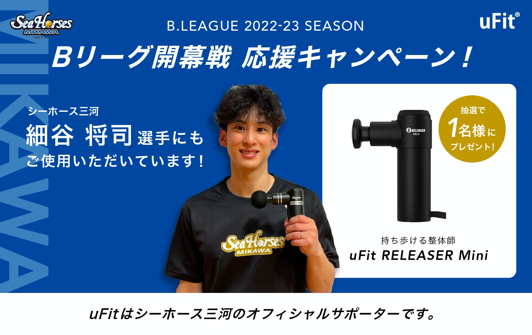 | シーホース三河 | 電動筋膜リリースガン「uFit RELEASER Mini」を1名様 https://ufit.co.jp/products/ufit-releaser-mini |