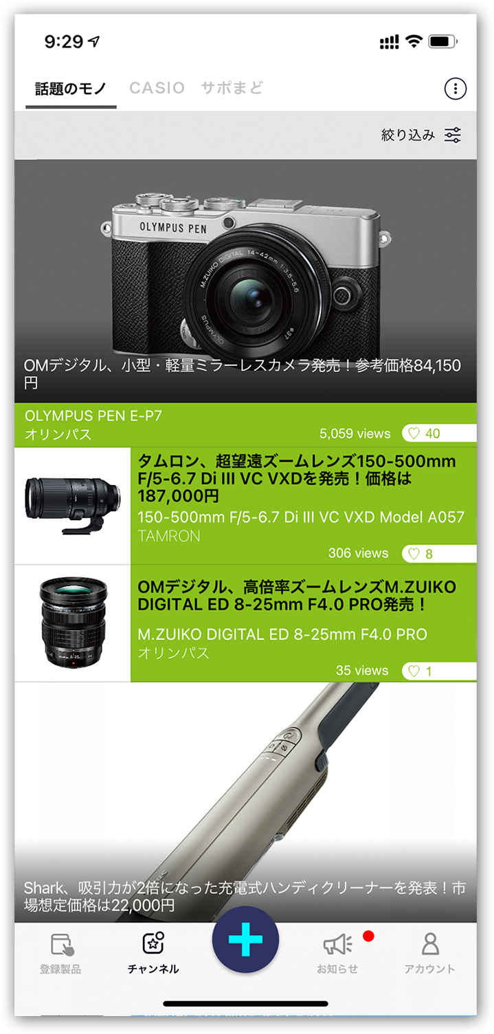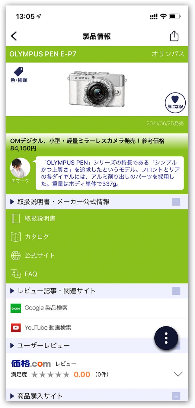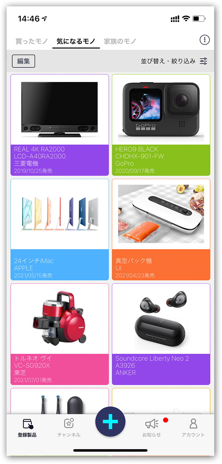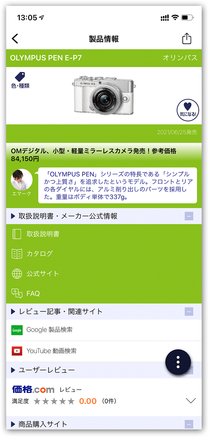 - 気になる・興味のある製品も登録が可能。価格や製品レビュー、メディアの記事などをアプリから閲覧できるので、購入検討に役立ちます。