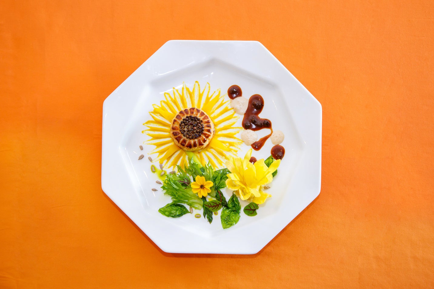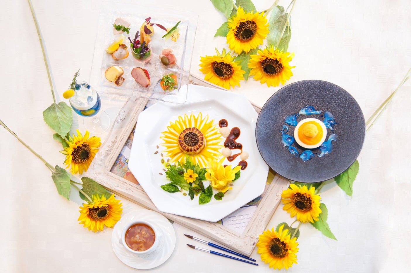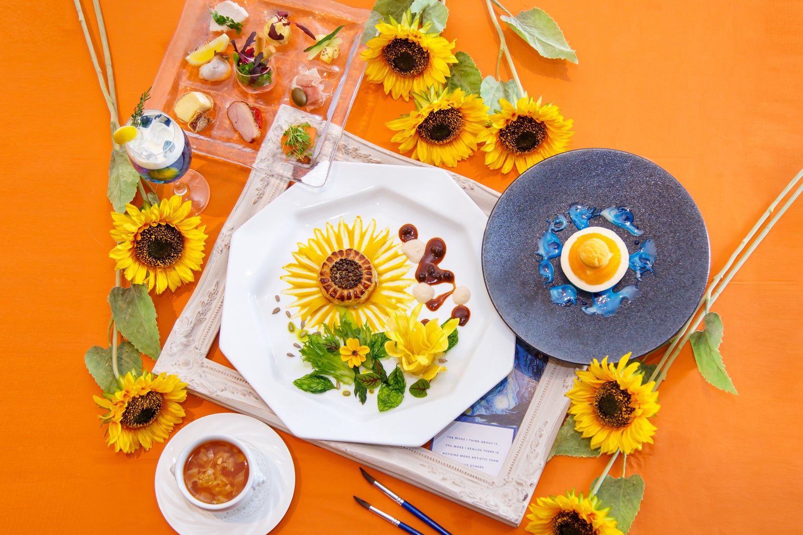 「ひまわり」に見立てた名古屋コーチンとフォアグラのパイ包み焼きや「星月夜」をイメージしたフロマージュブランのムースとマンゴーソルベなど、アートなランチをご用意いたしました。