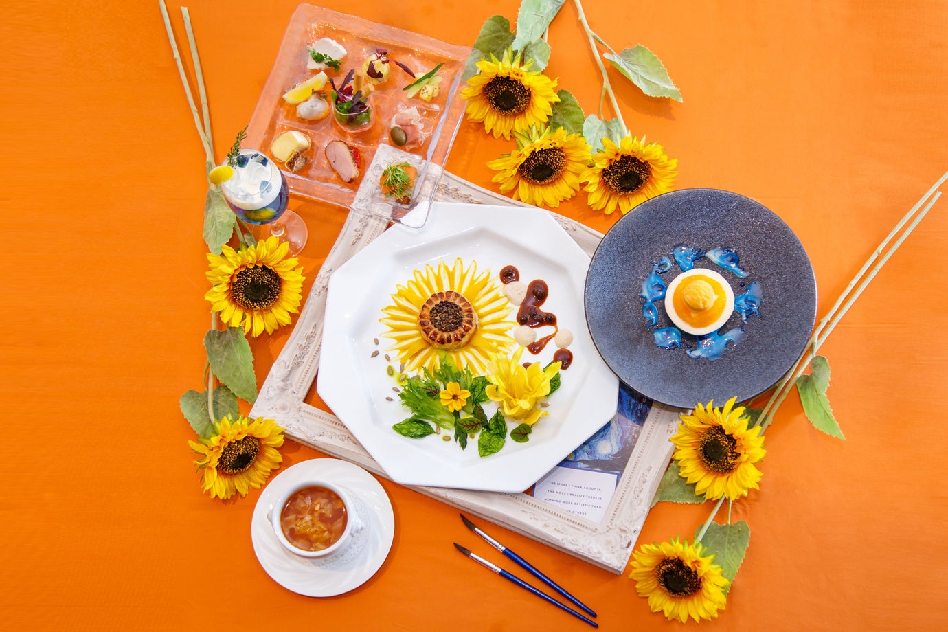 ゴッホのひまわりをモチーフに取り入れた美味しいスイーツに包まれる、アートなひとときをお過ごしください。