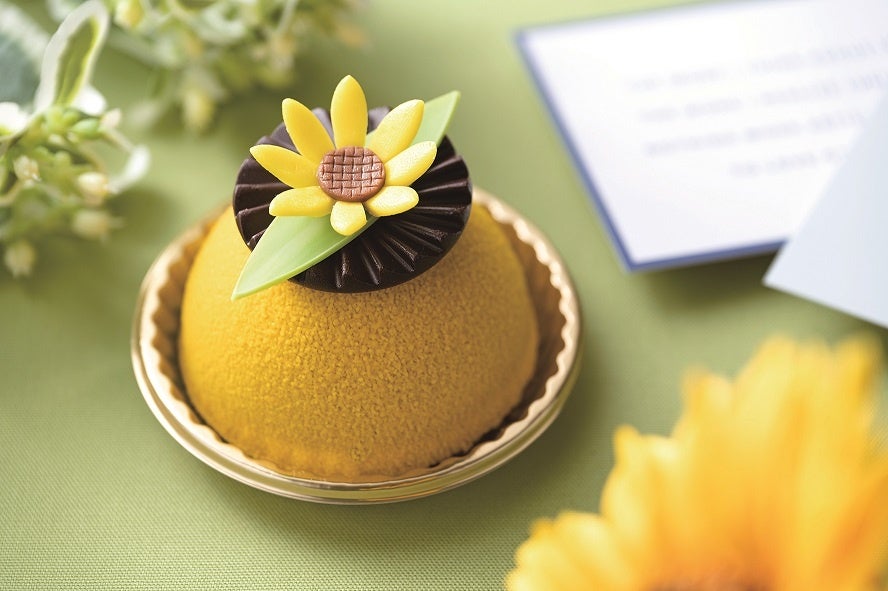 マンゴークリームとマンゴージュレをチョコレートムースで包み込み、ギリシャ神話のひまわりになった妖精「クリュティエ」をイメージして。