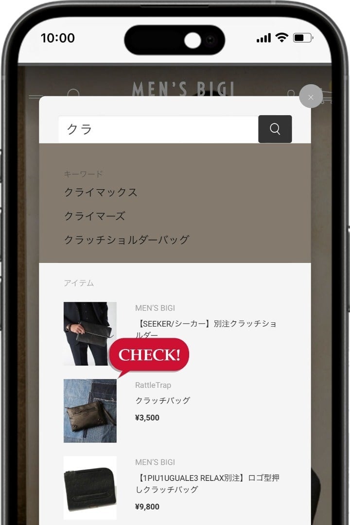 検索画面で文字入力を行うと、AIが検索ワードから予測した商品画像が表示されるようになりました。この商品画像から直接商品ページへ遷移できます。