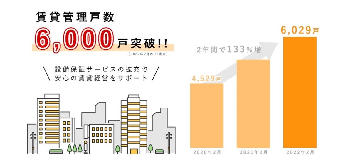 ・2022年2月28日時点の、賃貸管理戸数が6,000戸を突破
