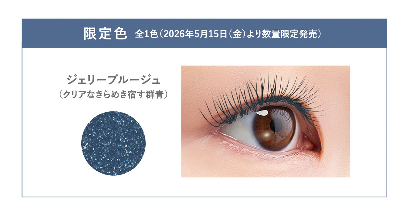 「ひとえ・奥ぶたえ用マスカラ」に夏の限定色が登場。汗・皮脂に負けずパッチリ目もとをキープ!透明感ときらめきをもたらす幻想的な〈ジェリーブルージュ〉