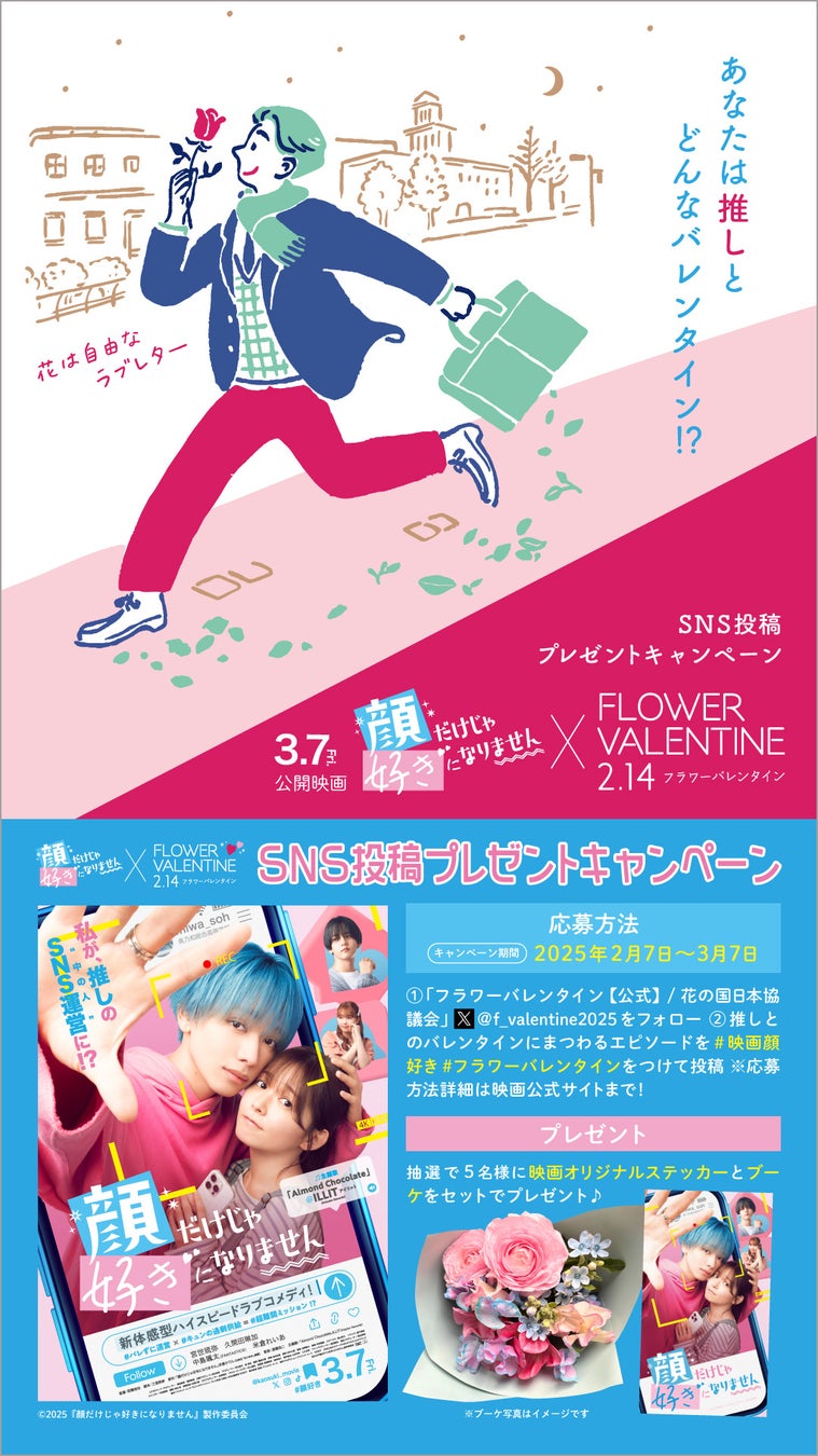映画公開を記念して、フラワーバレンタインとのタイアップが決定!推しとのバレンタインにまつわるエピソードを投稿してもらい、若年層の多様なバレンタインの楽しみ方を応援します。