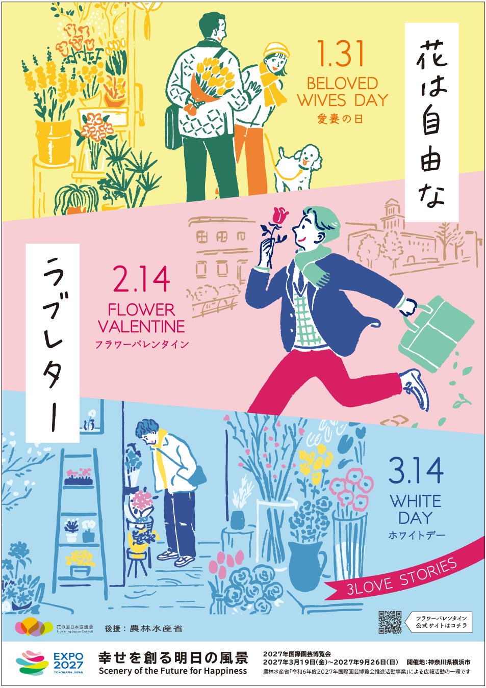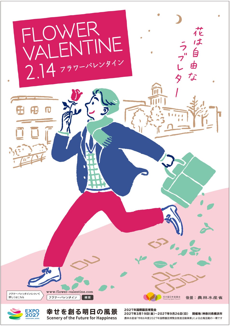 「フラワーバレンタイン」は、2021年から掲げるキャッチフレーズ「花は自由なラブレター」とともに、多くの人々に親しまれてきました。恋人だけでなく、友達、家族など、誰から誰へ贈ってもよいジェンダーレスで多様なバレンタインの形を提案し、花を通じて愛や感謝を伝えるコミュニケーションの定着を目指しています。