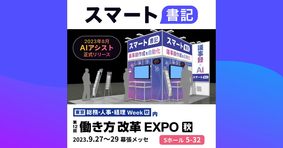 音声×AIで議事録作成を自動化する「スマート書記」、「第12回 働き方改革EXPO 秋」出展のお知らせ