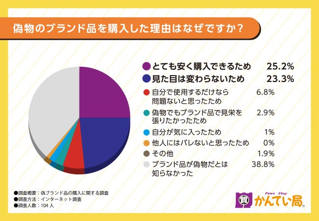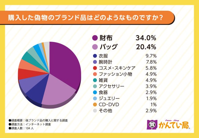 そこで今回、株式会社シンク(https://www.kanteikyoku-shikoku.jp/)と共同で、全国20〜60代の男女104名を対象に「偽ブランド品の購入」に関するアンケートを実施しました。