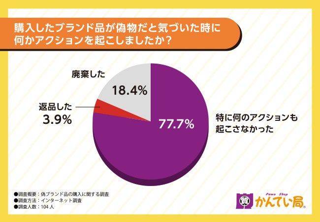 ブランド品が偽物だと気づいても『アクションを起こさなかった』が77.7%