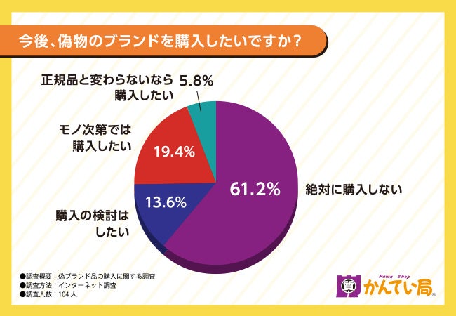 今後偽物のブランド品は『絶対に購入しない』が61.2%の結果に