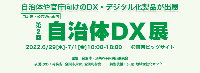当社は、5つの専門展の内、DXデジタル化・業務効率化などDX推進のヒントが見つかる「第2回自治体DX展」に出展いたします。