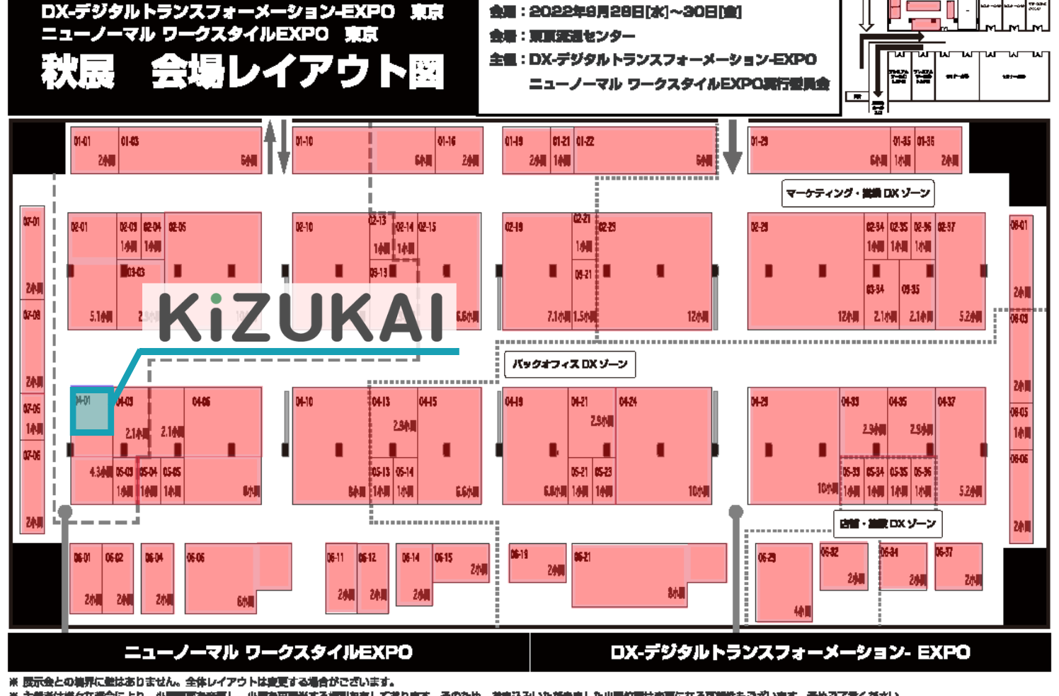 DX EXPO展内KiZUKAIブースにご来場の上、ご成約いただいた企業様につきましては、先着50社様限定で導入費用を無料とさせていただきます。詳しくはブース内、当社メンバーまでお問い合わせくださいませ。