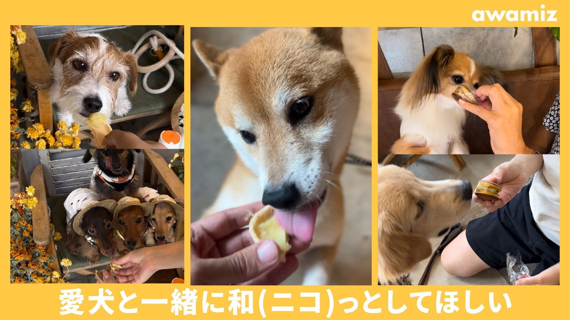 また、「和(わ)」という文字には、「ニコ」とも読める意味が込められており、ワンちゃんがawamizのシャンプーでさっぱりした後に、この和菓子を食べ、家族全員が笑顔で過ごすひとときを提供したいという願いも込められています。