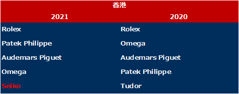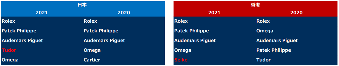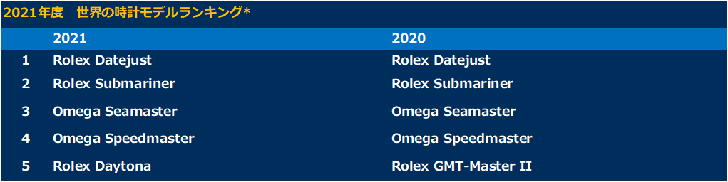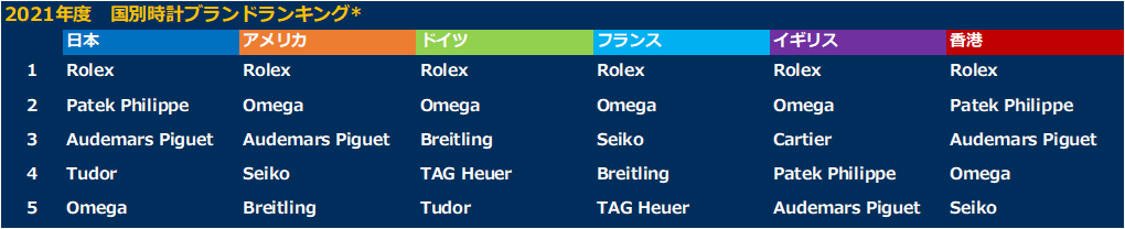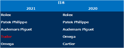 ■順位が変わらない欧米はどの国でも2020年と同じランキング結果、Omegaの人気も根強い