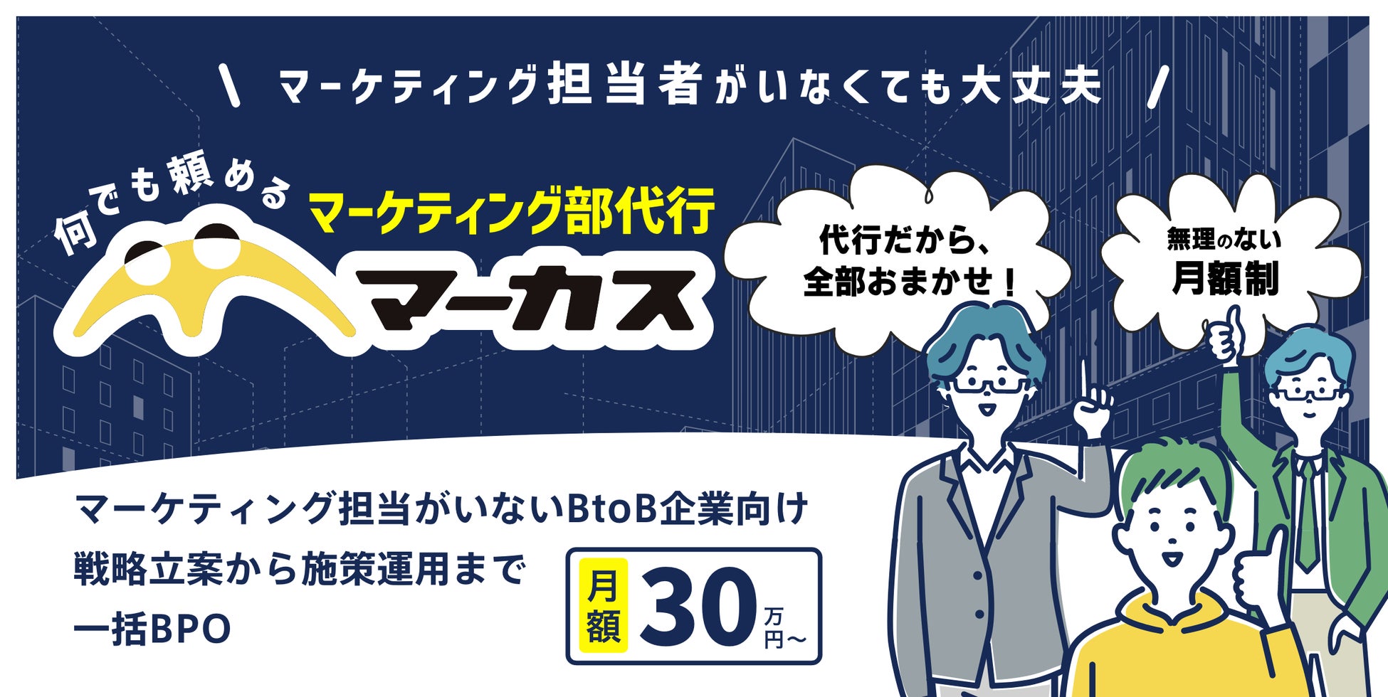 マーケティング担当がいないBtoB企業向け、マーケティング部代行サービス「マーカス」をリリース