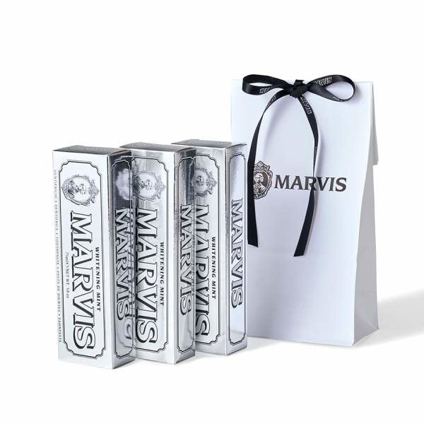 MARVISがおすすめする3ヵ月分のホワイト・ミントのセットです。輝く白い歯で笑顔を素敵に!