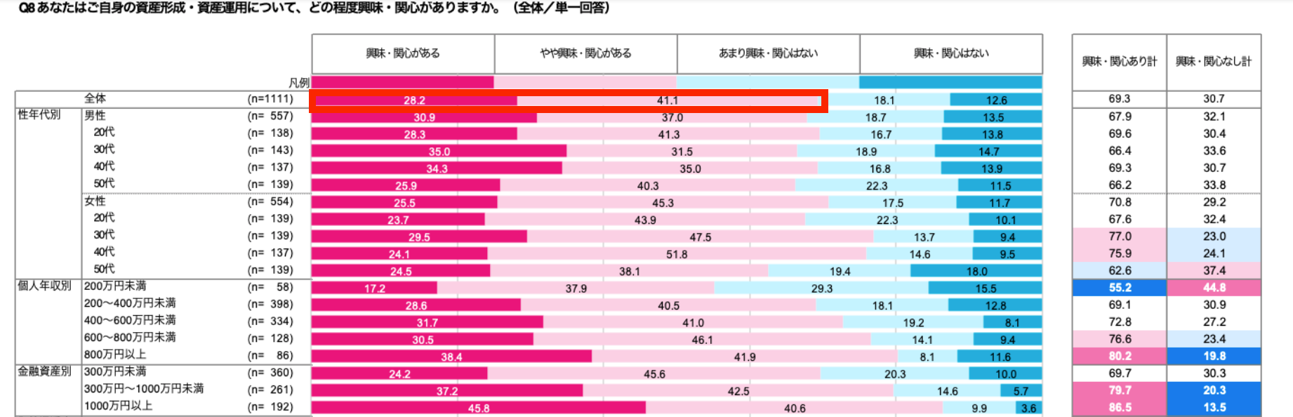 - 1.資産形成・資産運用への興味・関心度は7割と高い