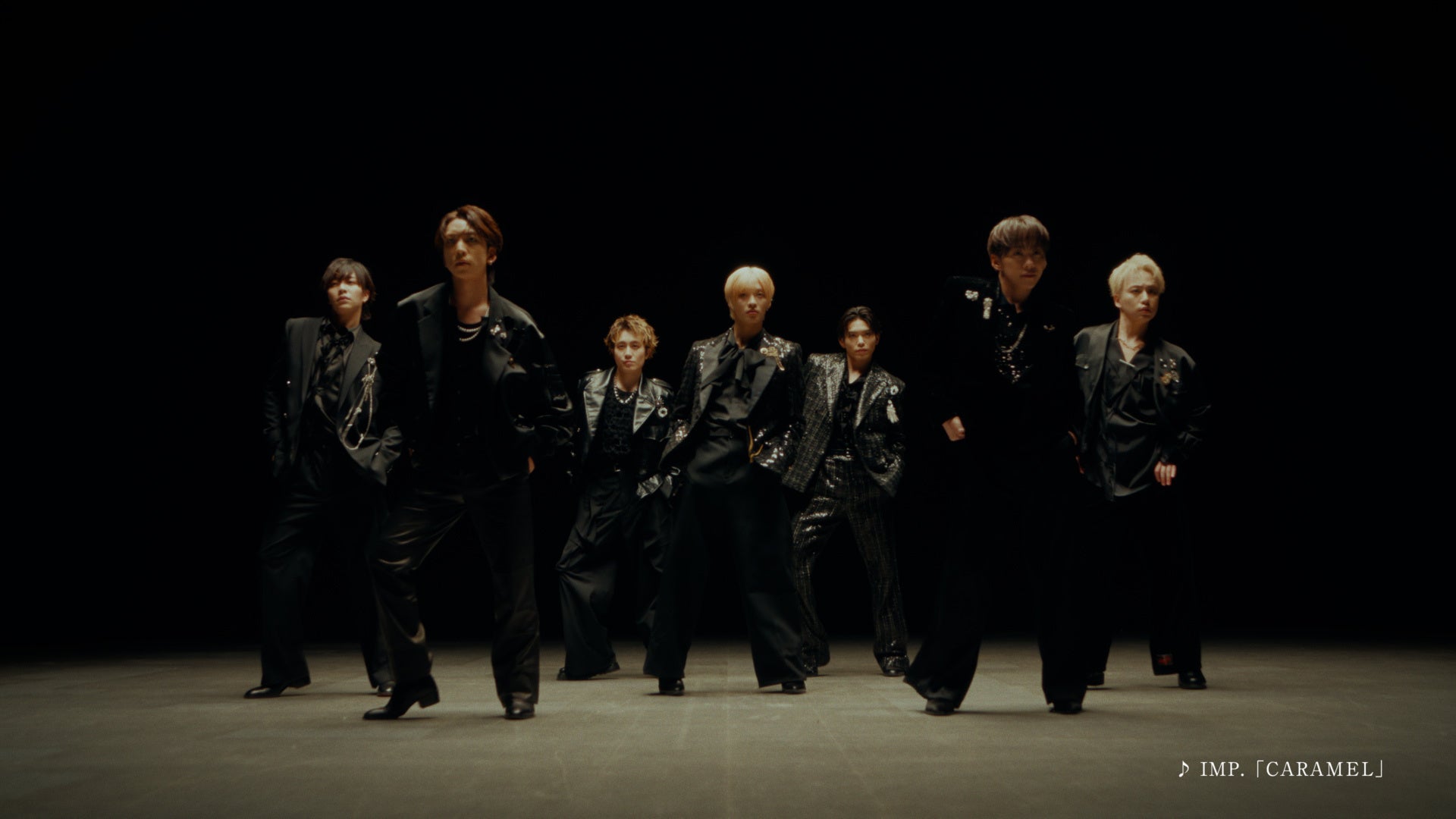 そして後半は黒を基調としたステージ空間に、IMP.のメンバー全員が集合し、自信と輝きを纏ったダンスシーンが繰り広げられます。7人は楽曲「CARAMEL」に合わせ、息の揃ったまさに“Perfect”なダンスを披露。