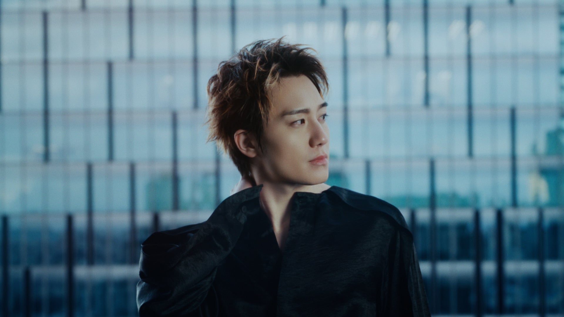 まずは、窓越しに映る都会の景色を背に、椅子に腰を掛け商品を見つめる佐藤さんのクールな表情からスタート。続けてそれぞれのメンバーが都会のビルの屋上や階段、都会を見下ろす部屋の中など、思い思いの場所で落ち着いた表情で佇む様子が、「触れ合うたび、僕たちは、完璧になっていく」という言葉とともに順に切り替わって映し出されます。これは「ON」である本番に向けた「OFF」の状態を表現したもの。