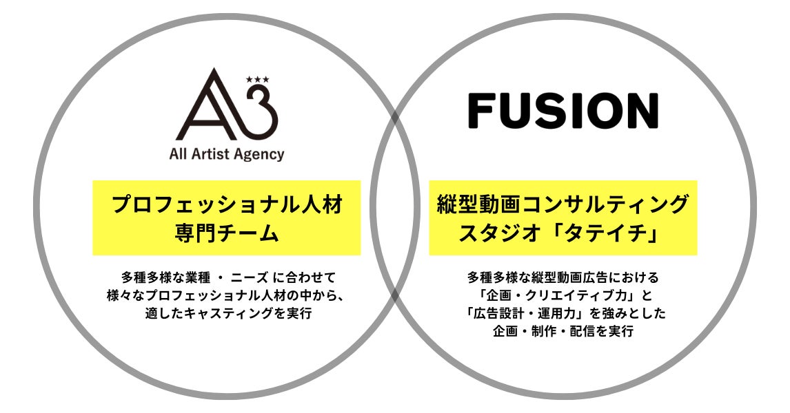 FUSIONとエイスリー、プロフェッショナル人材の活躍の場を広げ、縦型動画広告を創出する協同プロジェクトを始動。