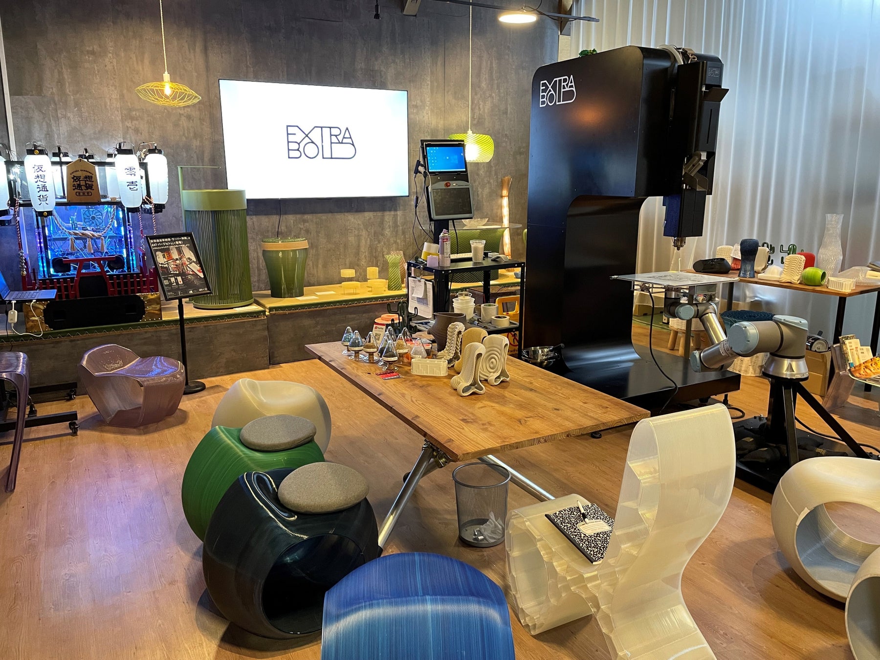 当社のショールームでは、サローネ・サテリテ2023最優秀賞を受賞した株式会社HONOKA.labの作品をはじめ、3Dプリント作品の常設展示を行っています。また、大型3Dプリンター「EXF-12」と協働ロボット式3Dプリンター「REX-Series BUTLER fabrication™(以下REX-BUTLER)」による造形デモもご覧いただけます。さらに、ご好評いただいている、材料の粉砕からリペレット、3Dプリントまで体験できるアップサイクル体験型の「EX²ツアー」など、様々なプログラムを提供しています。
