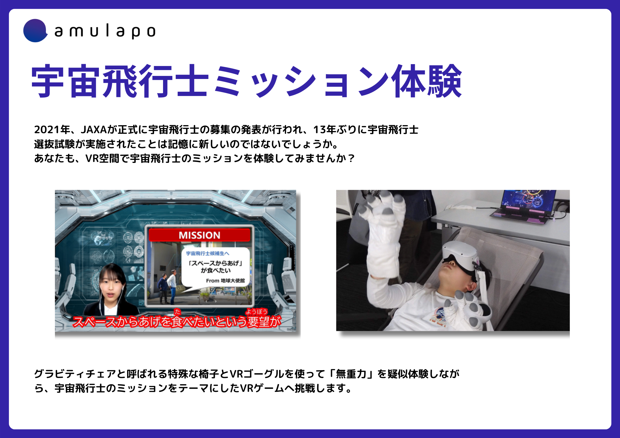VRゴーグルを使用し、宇宙飛行士のミッションにチャレンジ!