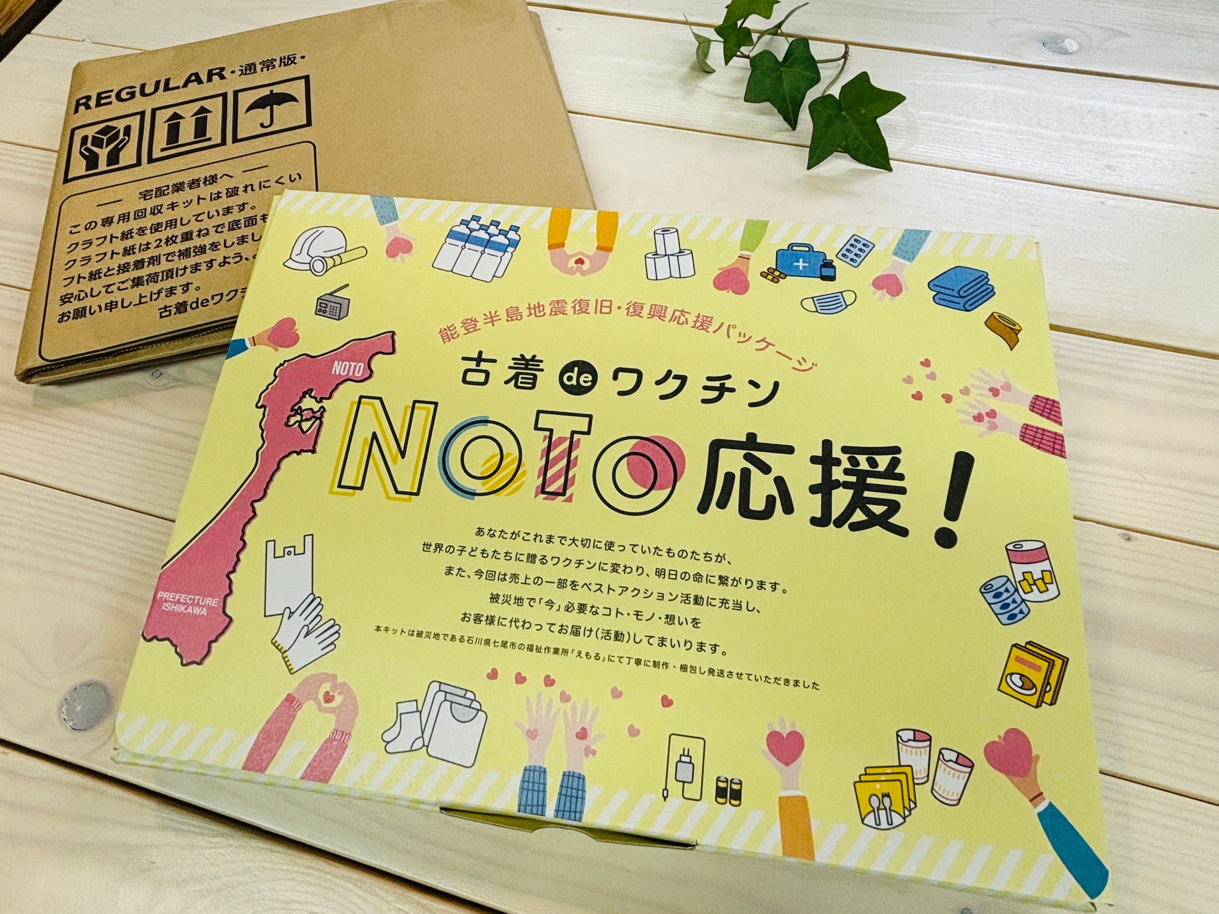 古着deワクチン 能登半島地震復旧・復興 応援パッケージの趣旨にご賛同いただけるお客様の想いと共に、被災地の皆さまが日常を取り戻せるよう常識にとらわれず様々な形の支援を継続して行ってまいります。協業する全ての人にとってベストな方法を考えながら、まずは「自分たちにもできること」から始めます。