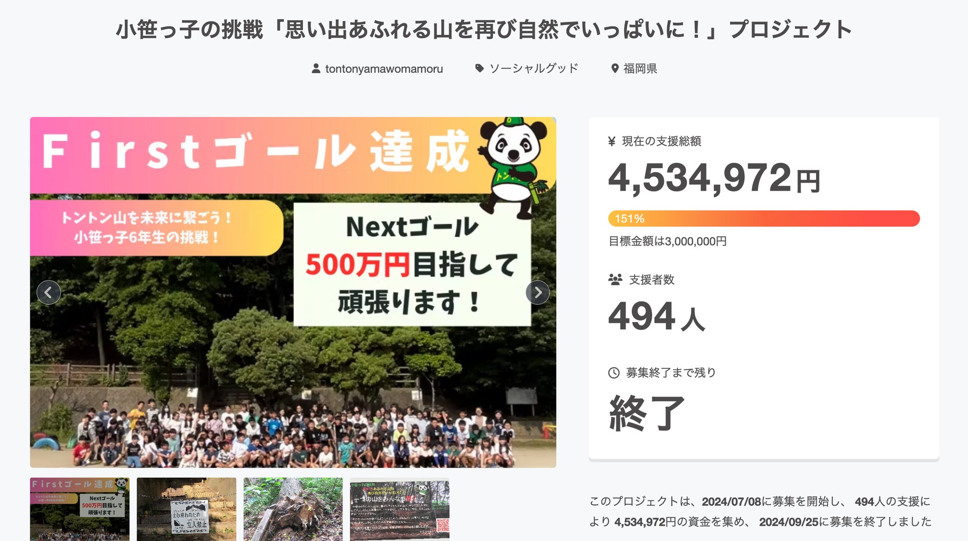 支援総額:4,534,972円(目標達成率:151%)