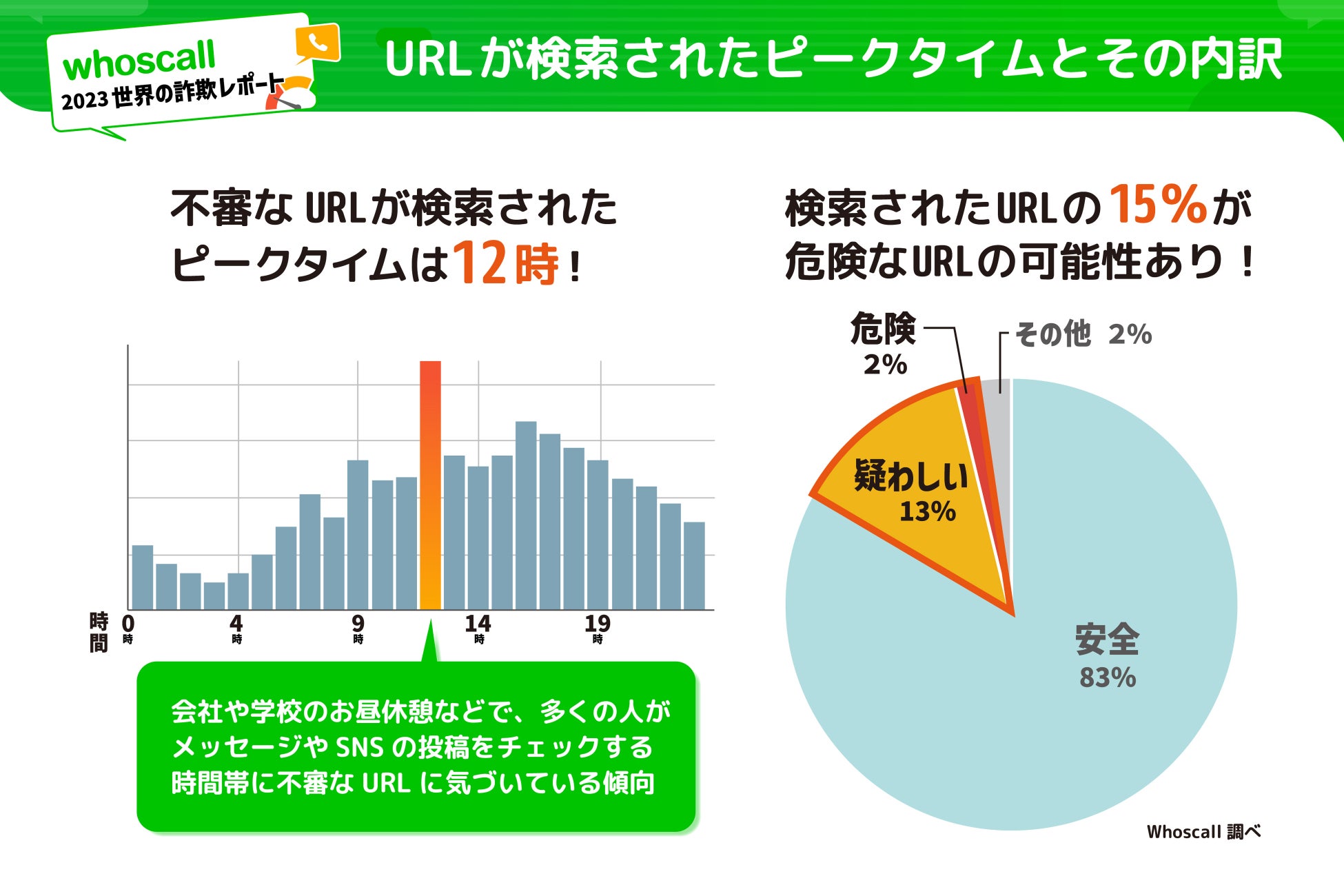 また特に12時台の検索率が高く、お昼休憩など不審なURLに気づいた際に、検索いただいていることが伺えます。
