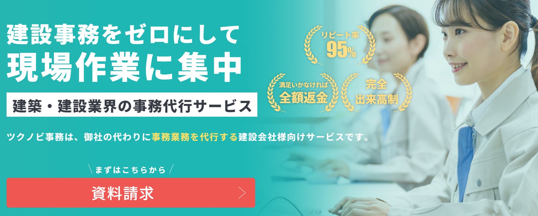 事務作業を90%削減!建設業特化の事務代行「ツクノビ事務」サービスのご紹介