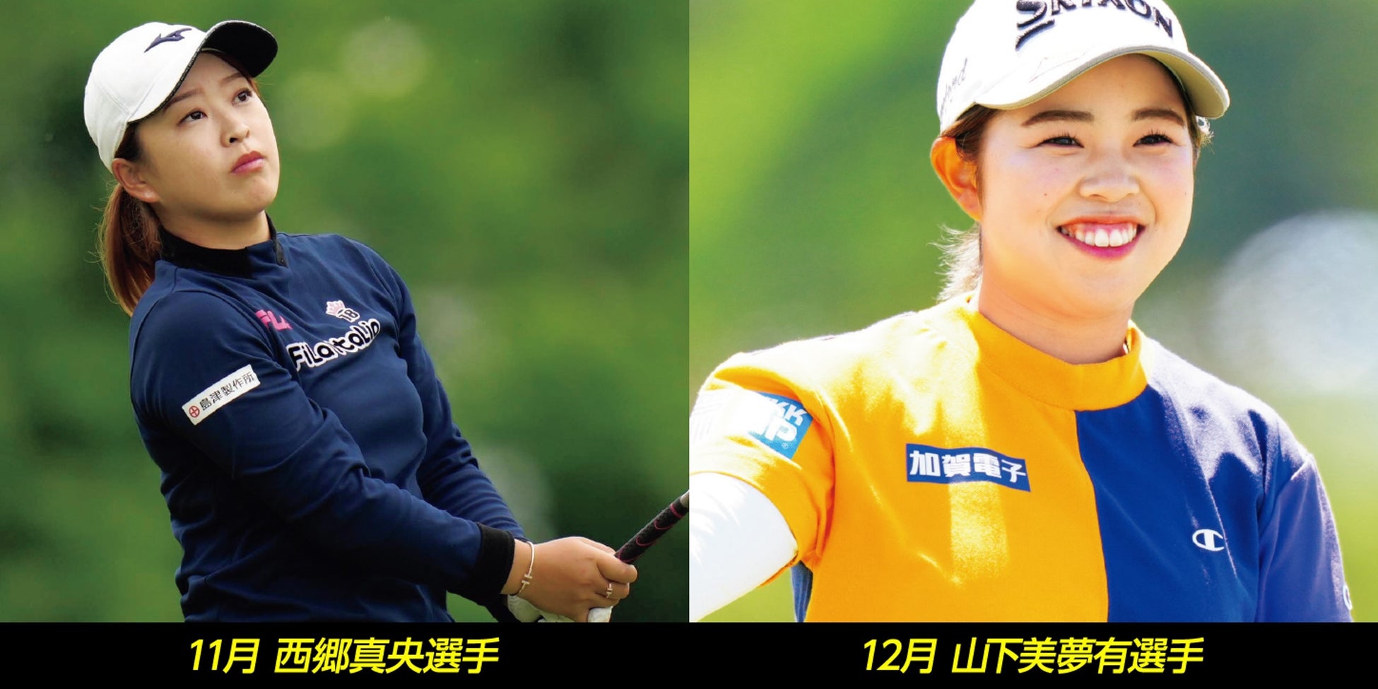 2023年の掲載選手は、吉田優利、西村優菜、笹生優花、高橋彩華、渋野日向子、小祝さくら、堀琴音、安田祐香、原英莉花、稲見萌寧、西郷真央、山下美夢有。今が旬のトッププロ選手ばかりです。