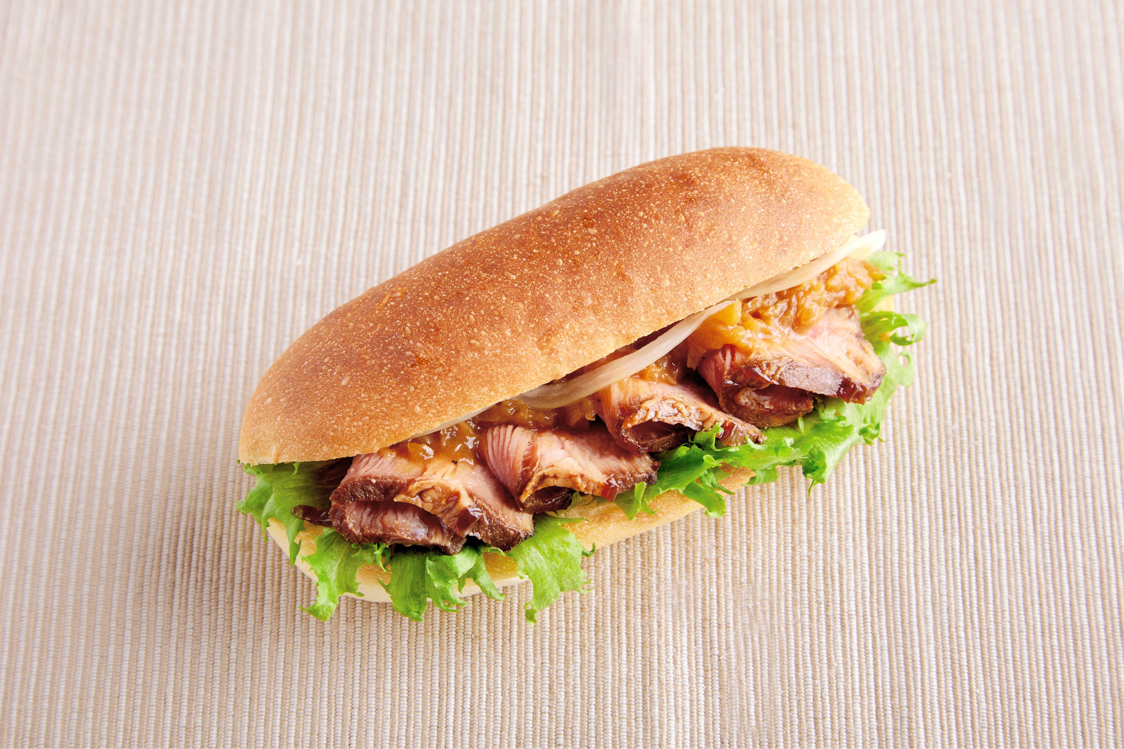 直火焼で旨味を閉じ込めたローストポークに玉ねぎベースのソースを合わせ、ふわふわのコッペパンにサンドした食べ応え抜群のコッペパン。