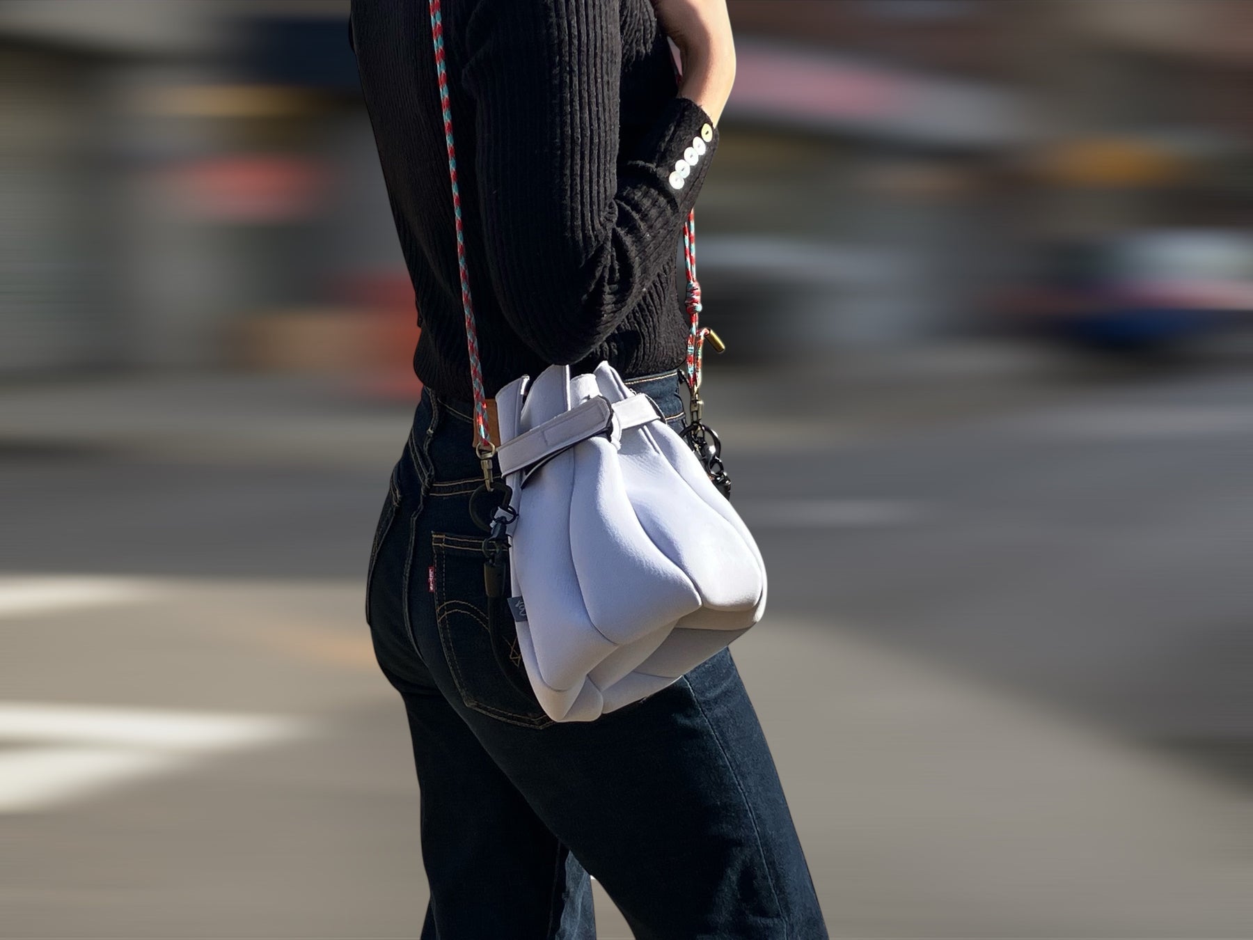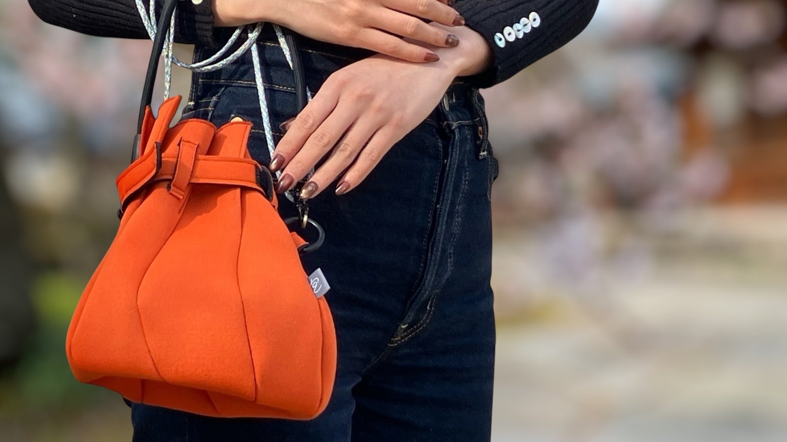 ■花のつぼみをイメージして開閉する新しい巾着ポーチ