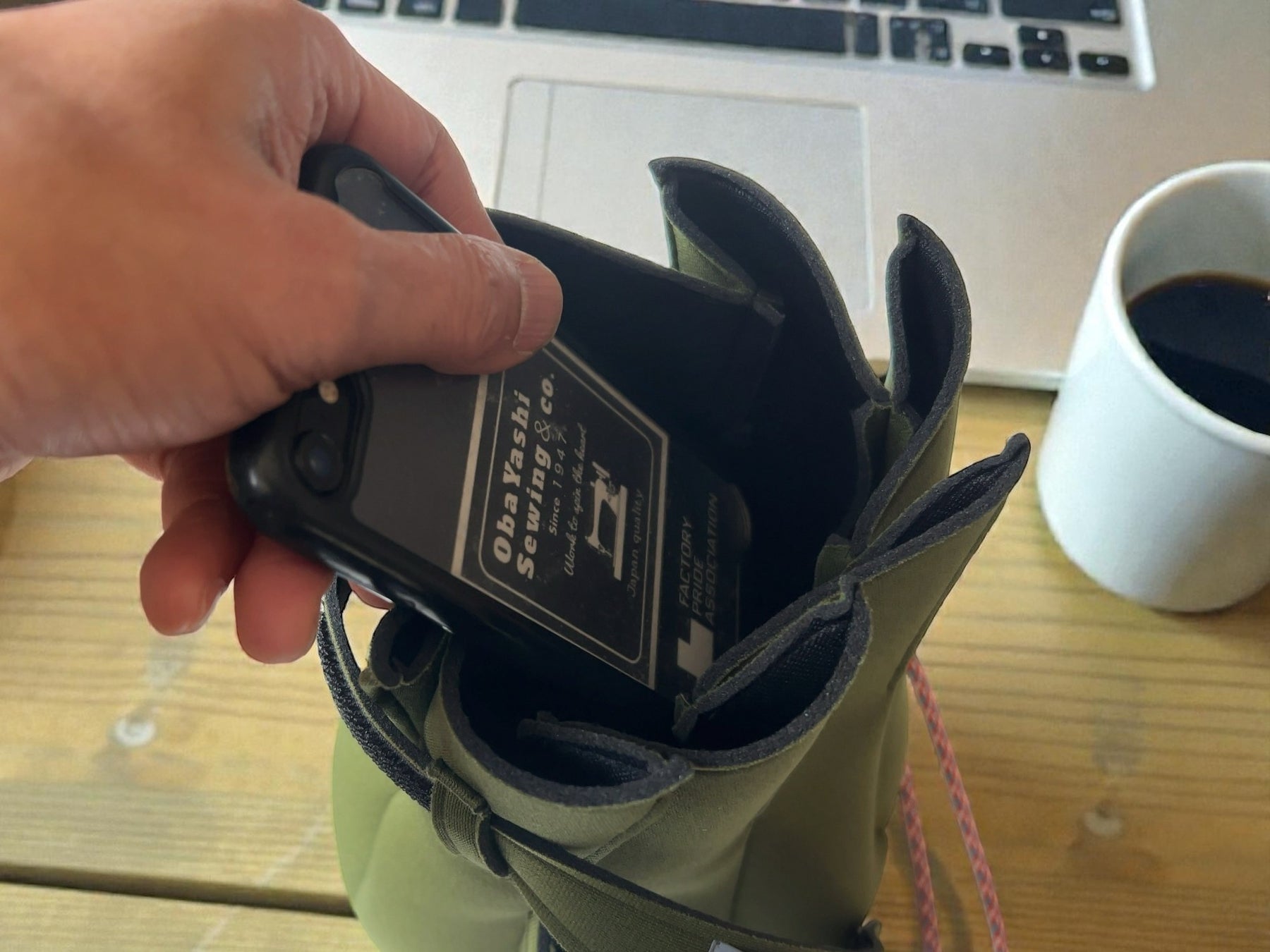 このアイデアをもとに、大林縫製が独自の型紙と縫製技術で何度も試作を重ね、 “花のつぼみが開くように開閉する” 独自構造の巾着ポーチが誕生しました。