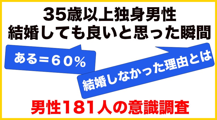 【35歳以上独身男性】結婚しても良いと思った瞬間「ある」が「60%」、それでも結婚しなかった理由とは!?