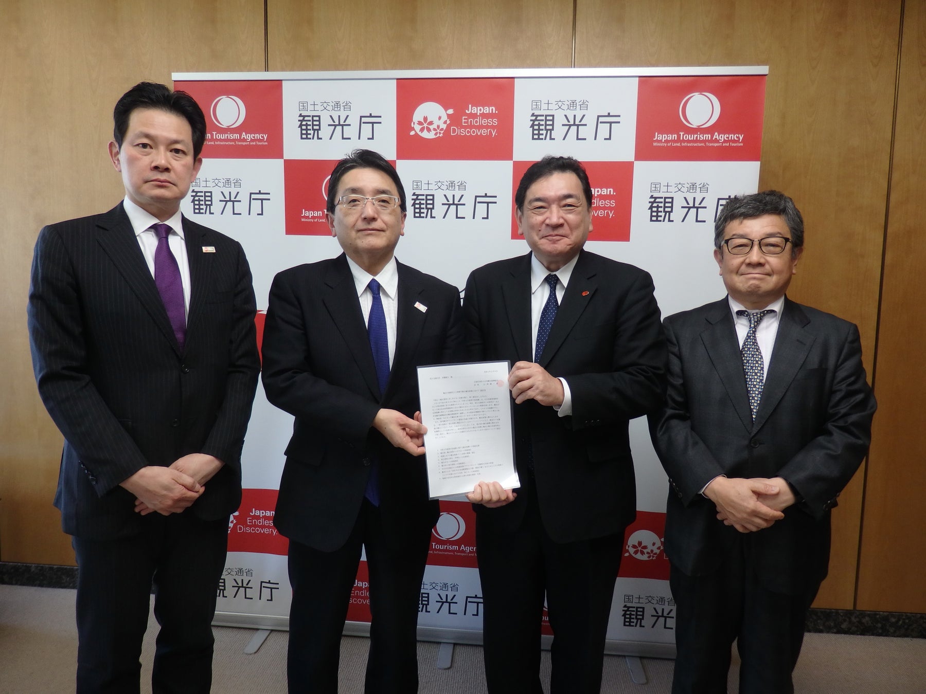 公益社団法人日本観光振興協会(本部:東京都港区 会長 山西 健一郎・略称:日観振)は、髙橋一郎観光庁長官を訪問し、国土交通大臣宛「観光の価値向上と持続可能な観光産業に向けて【提言】」を当協会会長の代理として最明仁理事長が、提言とりまとめに協力いただいた一般社団法人日本旅行業協会の蝦名邦晴理事長同席のもと、令和6年2月8日(木)に提出いたしました。(別添参照)