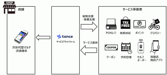 今回の提携で、当社の次世代型マルチ決済端末はtance社の店舗向けサービスプラットフォーム「tance mall」に対応します。これにより、tance mallを利用する店舗事業者は、店舗運営に関する多種多様なサービスが利用可能となり、店舗事業者が抱える集客や利便性向上といった課題の解消や店舗業務の効率化が期待できます。