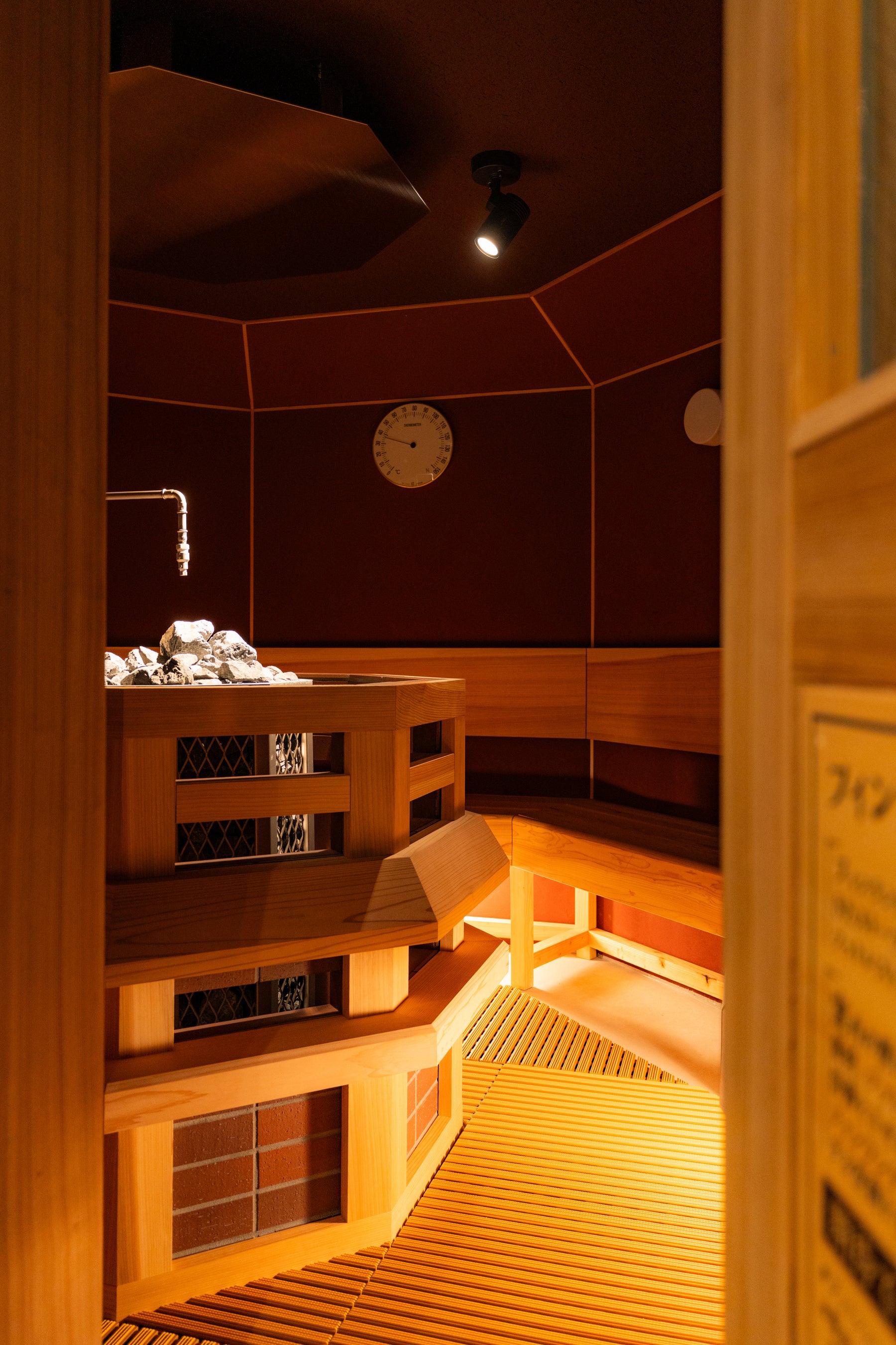 サウナ室には、リラックス効果のあるα-セドロールを多く含む屋久島地杉を使用し、BGMにはグレゴリオ聖歌で使用されていた「心の安定」「ストレス緩和」が期待できるフェジオ周波数の174HZをベースとしたオリジナルBGMを使用し、サウナそのものを楽しみ深いリラックス状態になることのできる空間になっています。