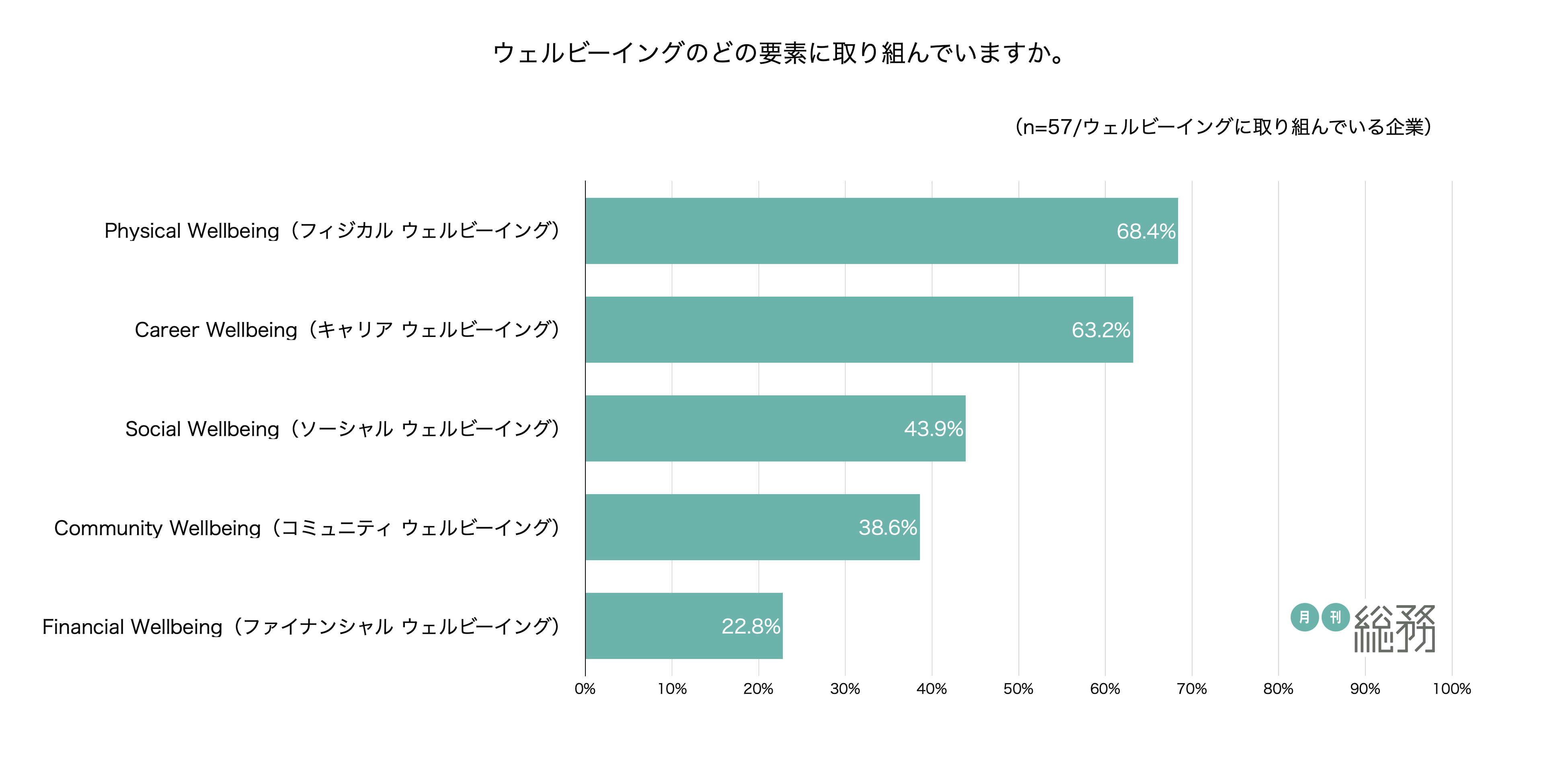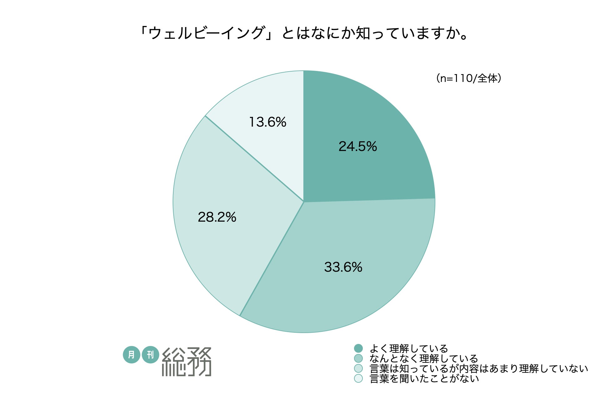 日本で唯一の総務専門誌『月刊総務』を発行する株式会社月刊総務(所在地:東京都千代田区、代表取締役:豊田健一)は、全国の総務担当者を対象に「ウェルビーイングに関する調査」を実施し、110名から回答を得ました。