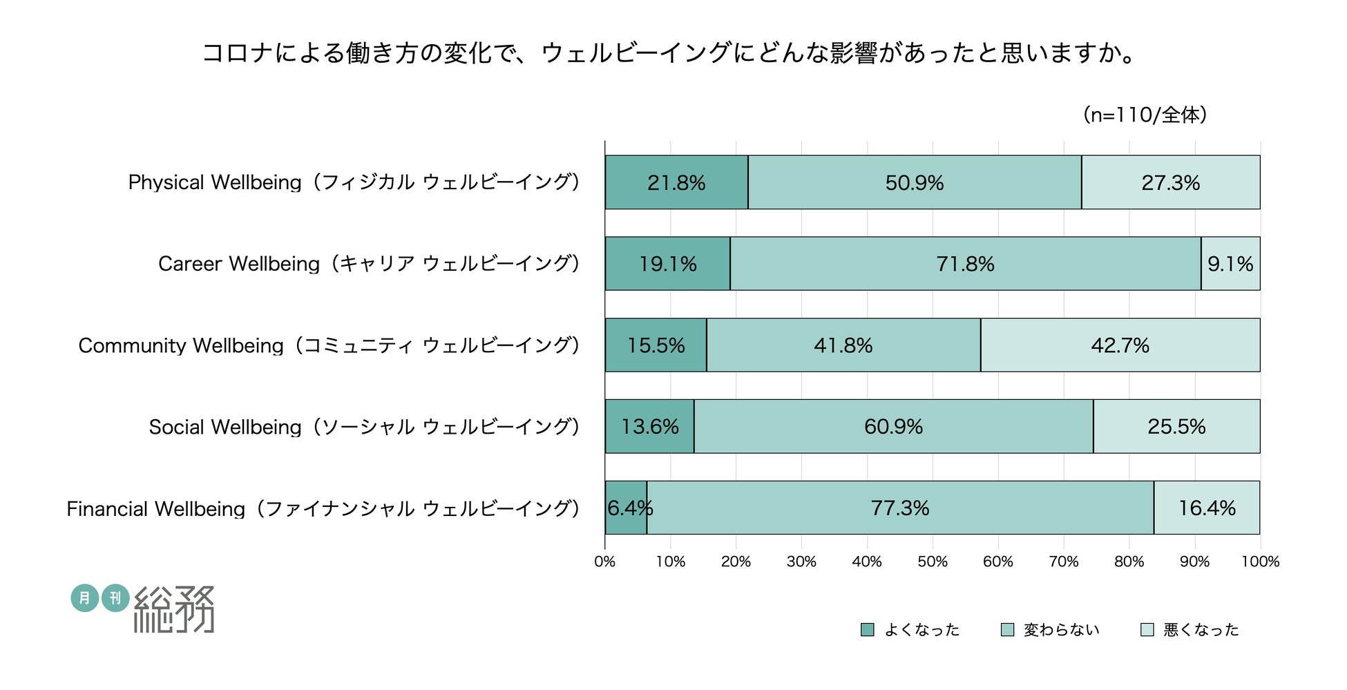 - コロナによる働き方の変化で、ウェルビーイングに与えた影響