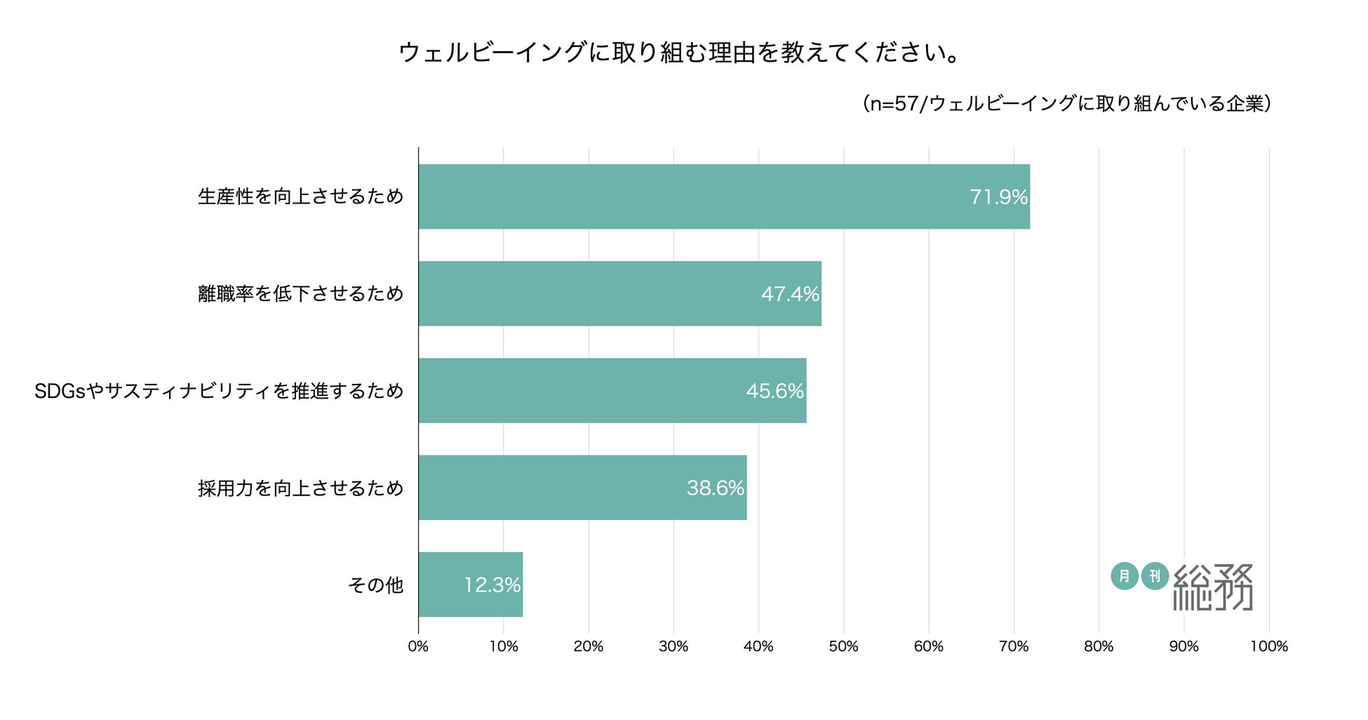 - ウェルビーイングに取り組む理由は「生産性の向上」が最多