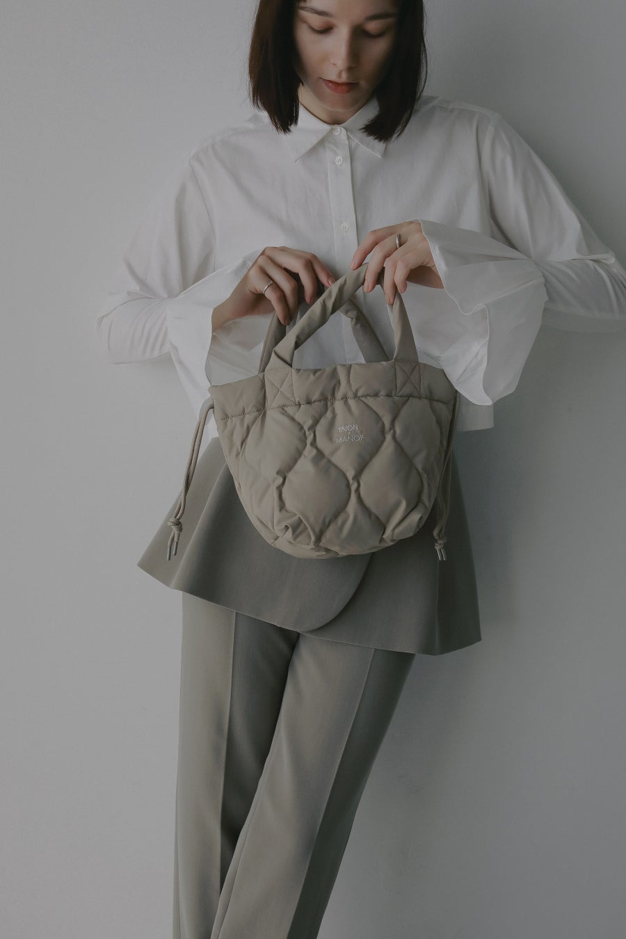 ふっくらとしたキルト生地とコロンとしたデザインがスタイリングに程よく抜け感を加えてくれるバッグ。トート型としてはもちろん、口元のドロストを絞れば巾着型バッグにシルエットチェンジできる2WAY仕様の優れもの。手持ちしやすい取手とドロストコードでのショルダー持ちが可能な仕様でシーンやスタイルに合わせて多彩な持ち方が楽しめます。