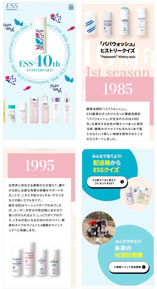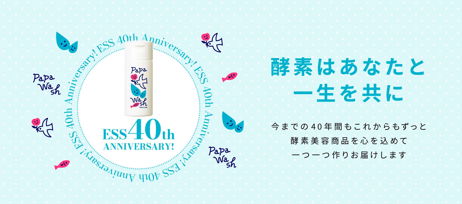 酵素洗顔「パパウォッシュ」を展開する(株)イー・エス・エスが「創業40周年プロジェクト」を始動。“酵素はあなたと一生を共に”をテーマに特設サイトをオープン、周年記念ボトルも販売開始