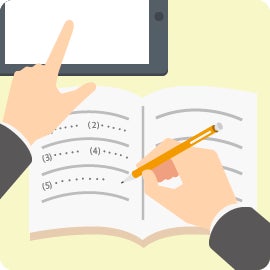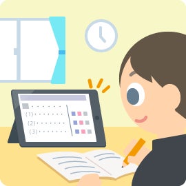 表⽰された問題を⾒て解答をノートに書き、画⾯上で答えを確認し⾃⼰採点する学習形式です。