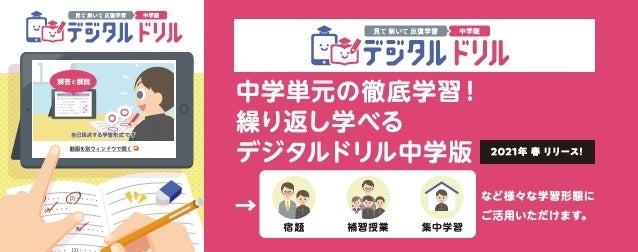 【デジタルドリル(中学版)】は中学単元を繰り返し徹底学習できるオンライン教材です。(主に民間教育業界向け/学習塾・学童・私立学校など)