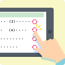 画⾯上で答えを確認し⾃⼰採点する学習形式です。